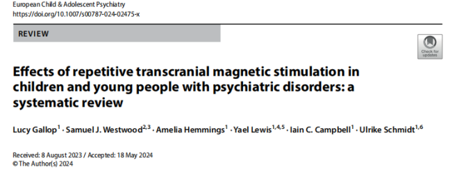 This review systematically reviewed studies on the effects of repetitive transcranial magnetic stimulation (rTMS) on child and adolescent psychiatric disorders (78 studies, 1389 participants, aged 3-25 years, covering major depressive disorder, autism spectrum disorder, schizophrenia, obsessive-compulsive disorder, tourette syndrome, attention deficit hyperactivity disorder, borderline personality disorder, anorexia, binge eating disorder, catatonia, and internet gaming addiction) to
