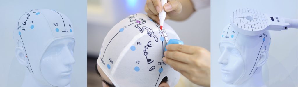 Precise positioning is an important cornerstone for threshold detection and guaranteeing treatment effects of transcranial magnetic stimulation (TMS). At present, there are several commonly used positioning methods, such as the 5cm positioning method and the TMS navigation system. Each positioning method has its own advantages and disadvantages. The 5cm positioning method is convenient and fast but relatively inaccurate while the navigation system is expensive and time-consuming. YINGCHI has designed a positioning cap based on the internationally recognized 10-20 EEG positioning system, which has the advantage of quickly and accurately finding stimulation targets, and is suitable for routine clinical treatment of large samples and brain function exploration.